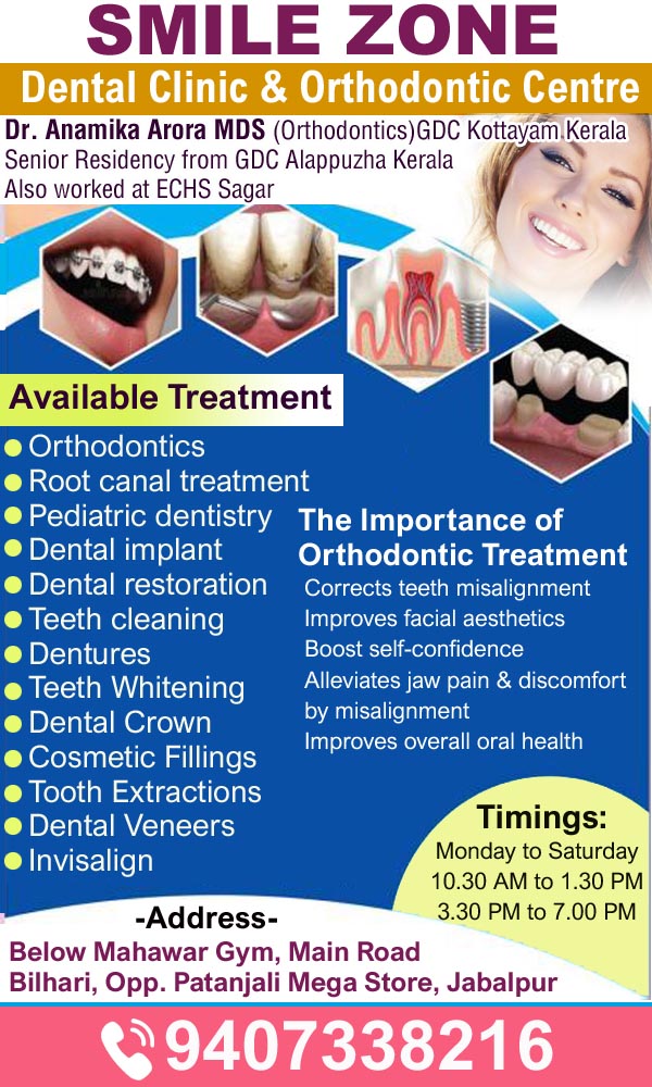 Address: Smile Zone, Below Mahawar Gym, Opp. Patanjali Mega Store, Main Road Bilhari, Jabalpur M.P.