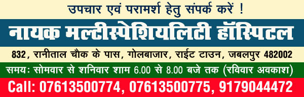 Naik Multispeciality Hospital, 832, Golbazar, Near Ranital Chowk, Wright Town, Jabalpur, M.P. 482002 |