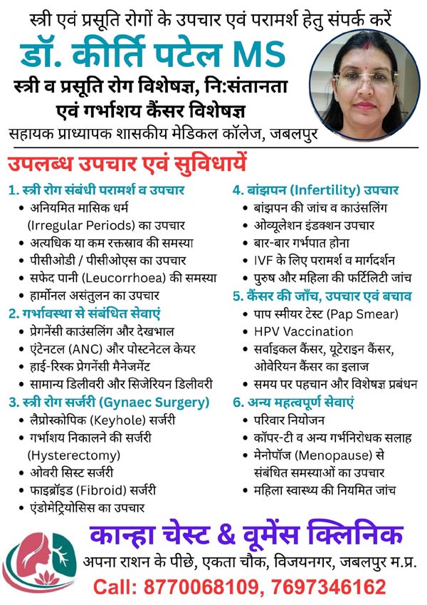 Address: Kanha Chest and Womens center, Behind Apna Rashan Store, Ekta Chowk, Vijaynagar, Jabalpur M.P.482002