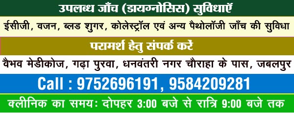 Address: Vaibhav Medicose, Garha Purva Road, Near Dhanwantri Nagar Chowk, Jabalpur M.P.