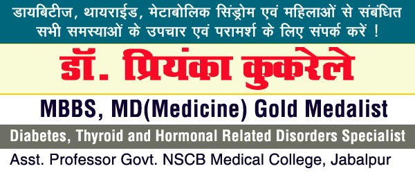 About, Dr. Priyanka Kukrele (Diabetes, Thyroid, Obesity Specialist):Dr. Kukrele Clinic Jabalpur, Diabetes specialist in Wright Town, Jabalpur, Dhanwantri Nagar Medical Jabalpur, MD Medicine in Jabalpur, Hormonal Diseases specialist doctor, Obesity Specialist in Jabalpur, Lady MD Medicine in Jabalpur