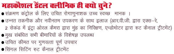 Address: Mahakaushal Dental Clinic, Beside Sanskardhani Hospital, Shankar Nagar, Katangi Road, Karmeta, Jabalpur M.P. 482002