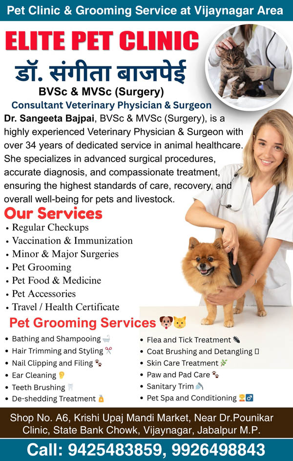 About, Elite Pet Clinic:Pet clinic in vijaynagar Jablapur, Pet Grooming Service in Vijay Nagar, Jabalpur, Dr. Sangeeta Bajpai Veterinary physician,Jabalpur