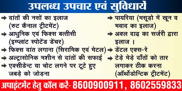 About, Harsh Dental Care and Maxillofacial Centre:Dr. Harshit Shrivastava (MDS) Oral and Maxillofacial Surgeon Timings : Monday to Saturday Morning 10 AM to 2 PM Evening 5 PM to 9 PM (Sunday Evening Closed)